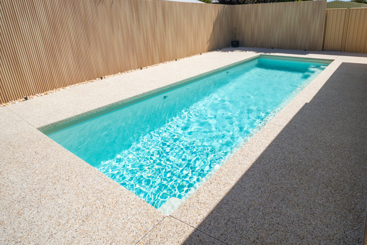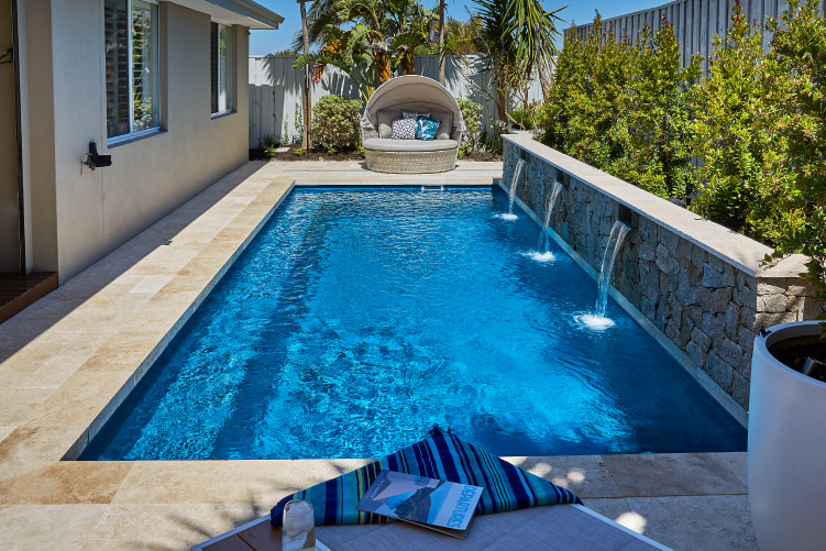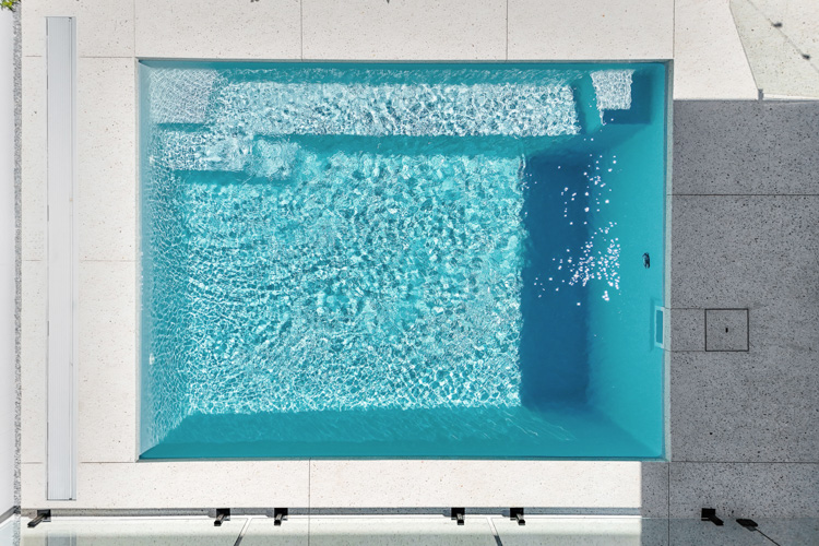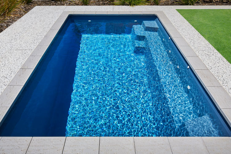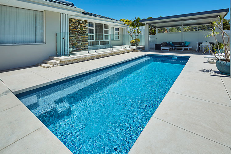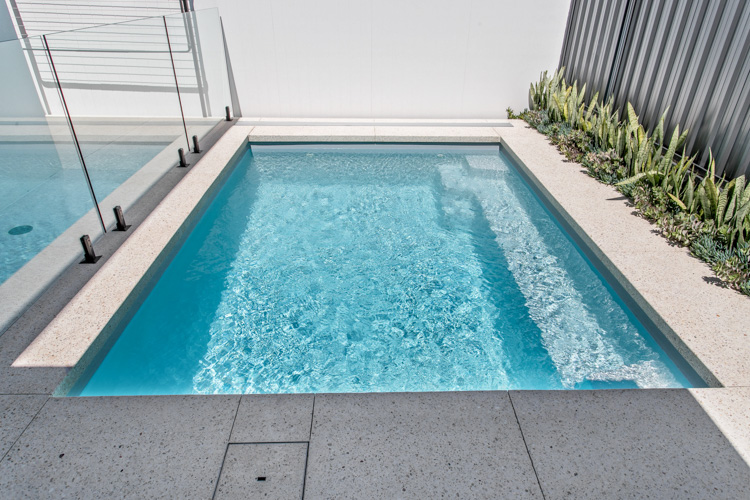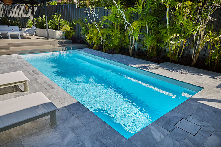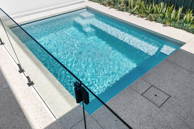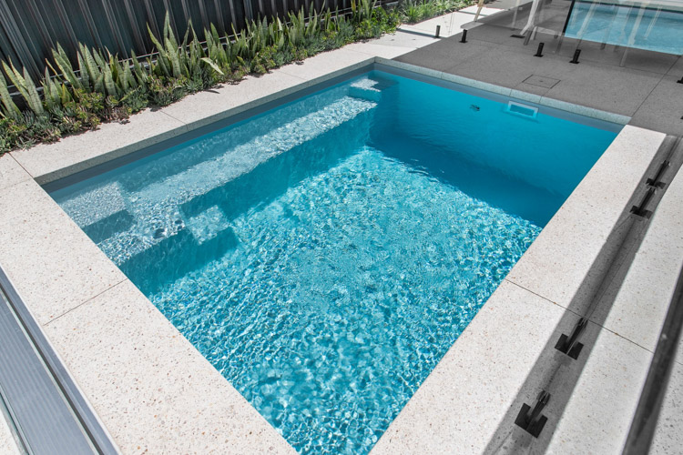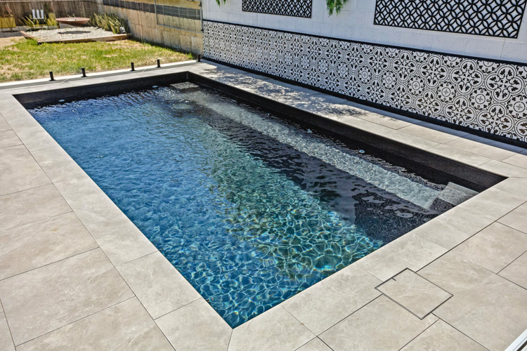 Embodying a captivating blend of form and function, the Jurien pool stands tall as one of our most coveted geometric pool designs. Its sleek and modern profile makes it an ideal choice, whether you’re considering it for a newly developing property or seeking to enhance the allure of an already established home.