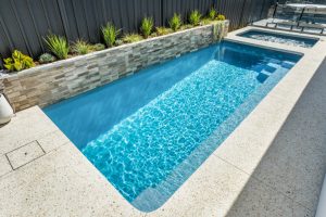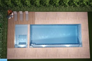 Introducing the Brooklyn Slimline, an impressive one-piece configuration meticulously crafted with the entire family in mind. This contemporary pool design offers a harmonious blend of