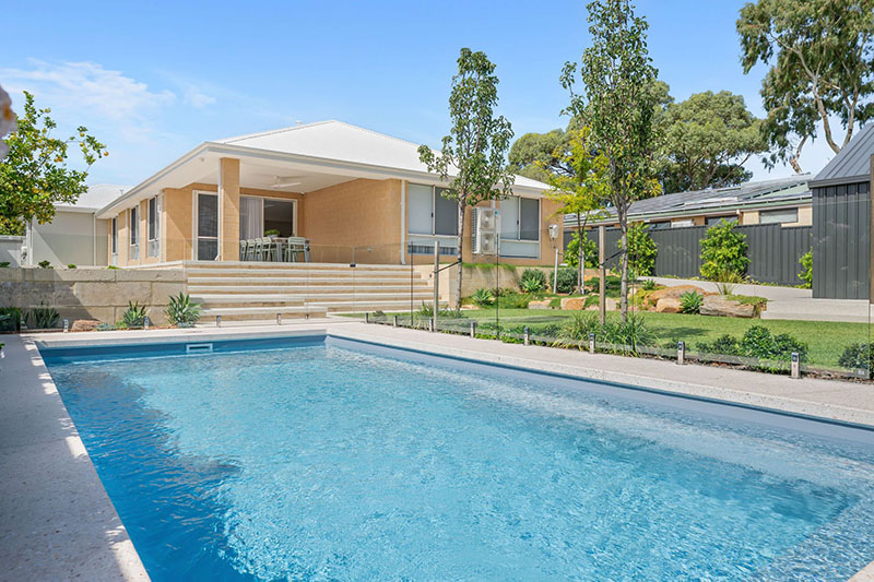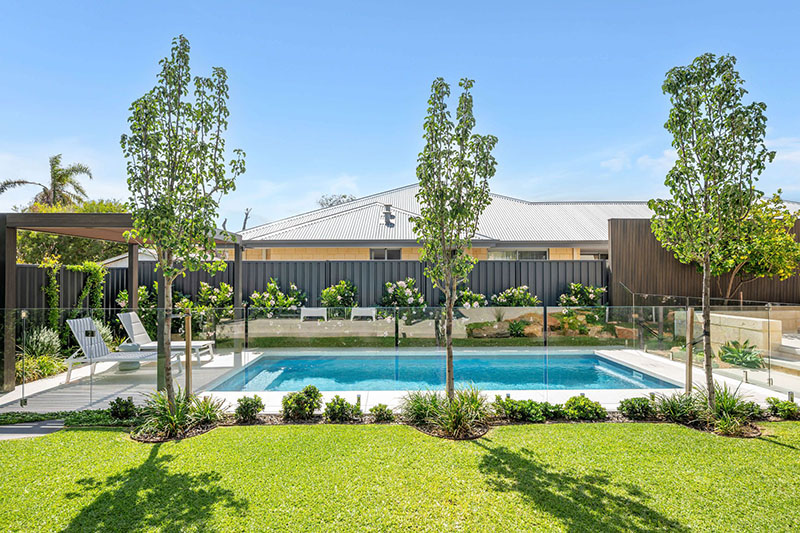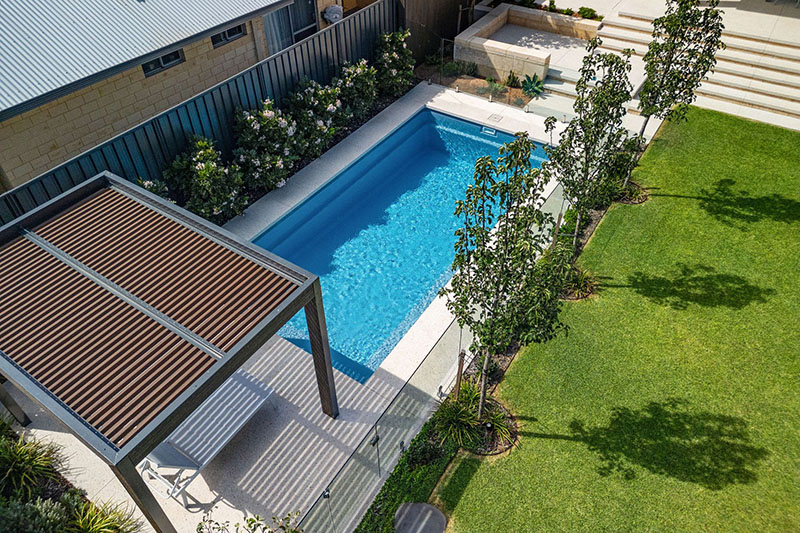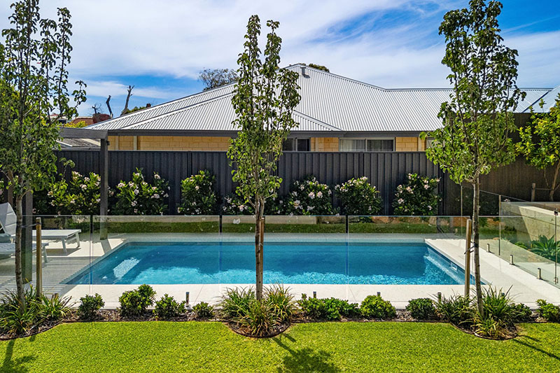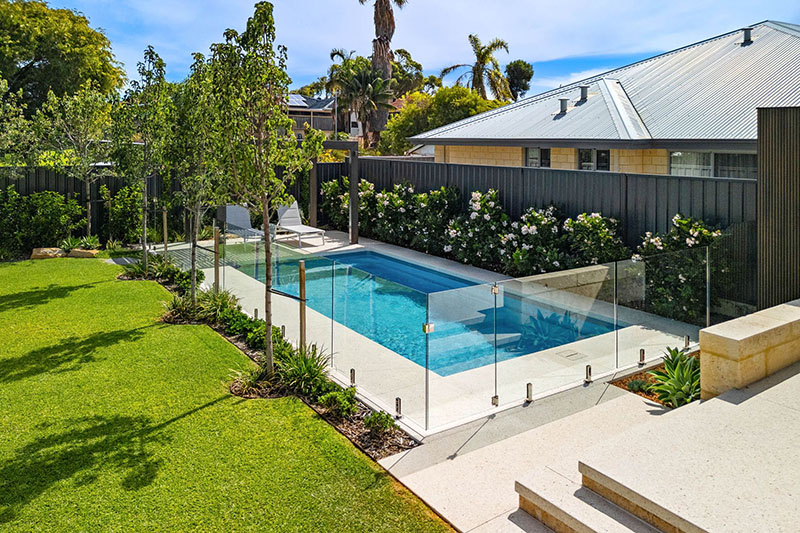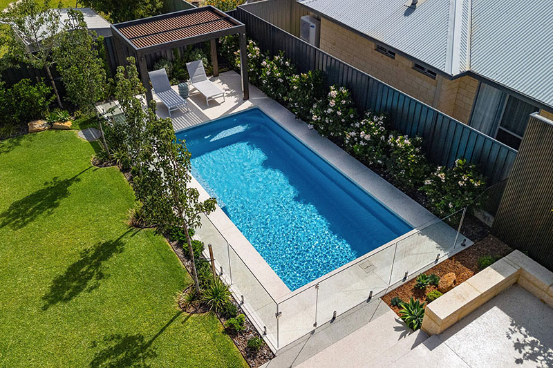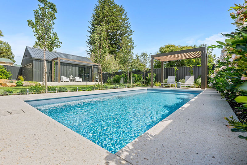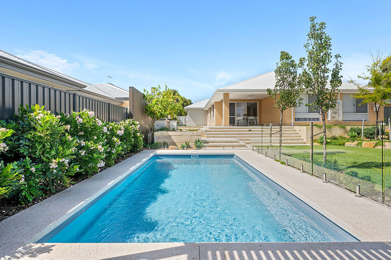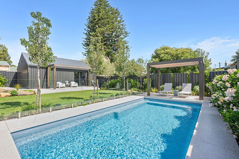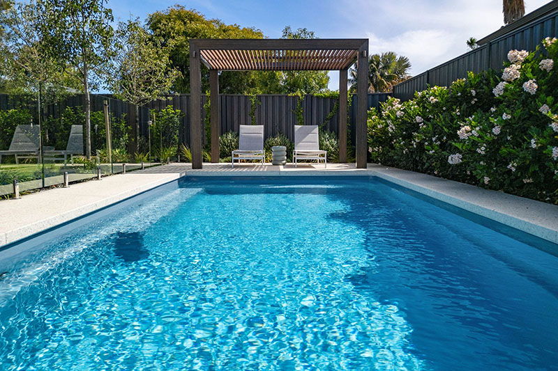 This 7.5m x 3.8m Billabong pool in Hampton Grey Shimmer brings a sleek, coastal elegance to this Safety Bay backyard. Its spacious layout offers plenty of room for swimming, relaxing, and entertaining, making it ideal for families and outdoor gatherings. The Hampton Grey Shimmer finish gives the water a cool, silvery-blue hue that beautifully reflects the natural light, complementing the laid-back coastal vibe. A stylish and functional addition, this pool is perfect for modern living by the bay.