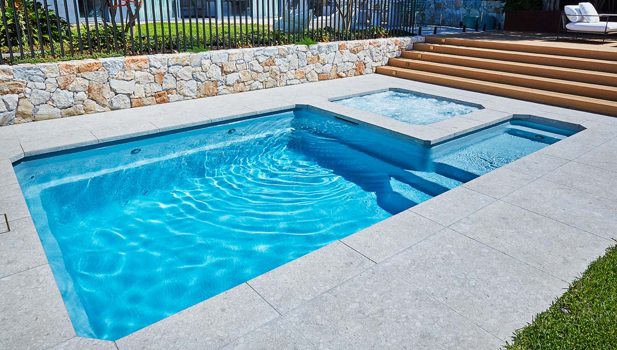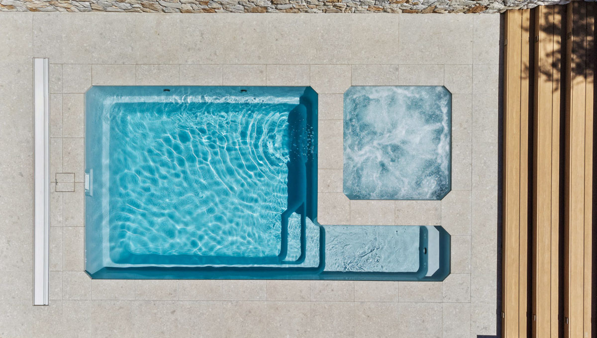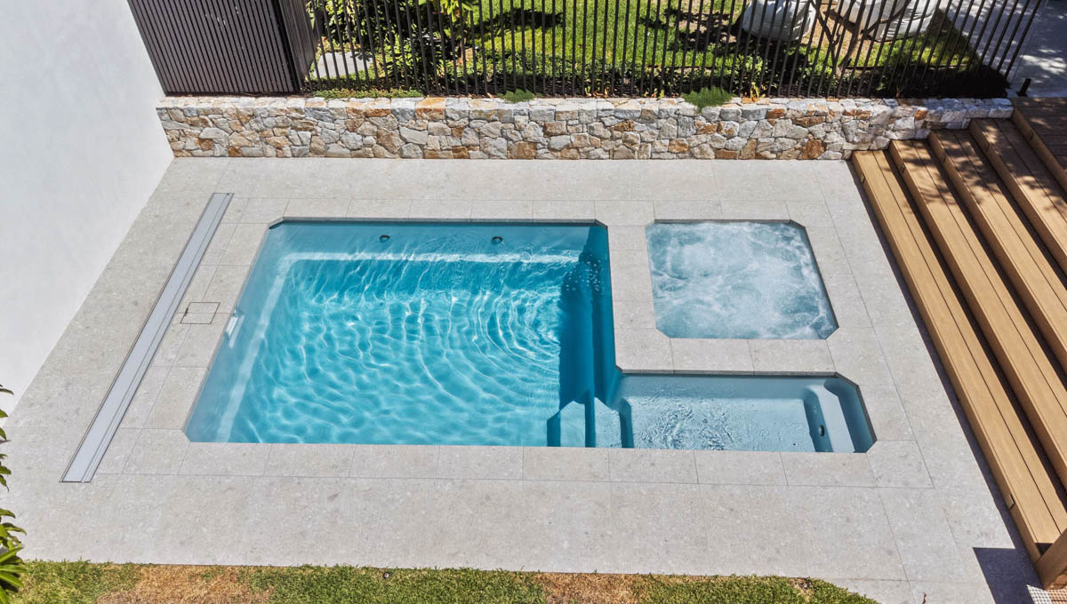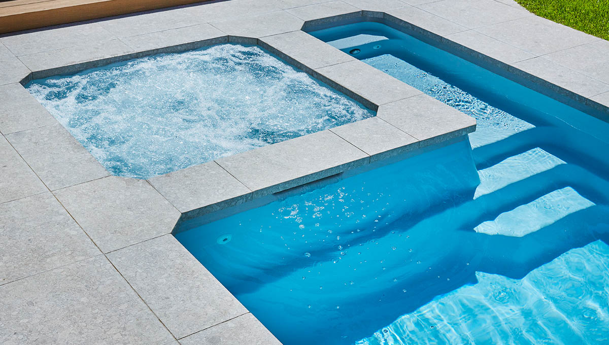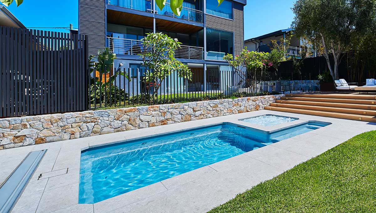 Fibreglass Pools Melbourne > Pools > Brooklyn Slimline 6.2m x 3.5m Silver Shimmer Doubleview