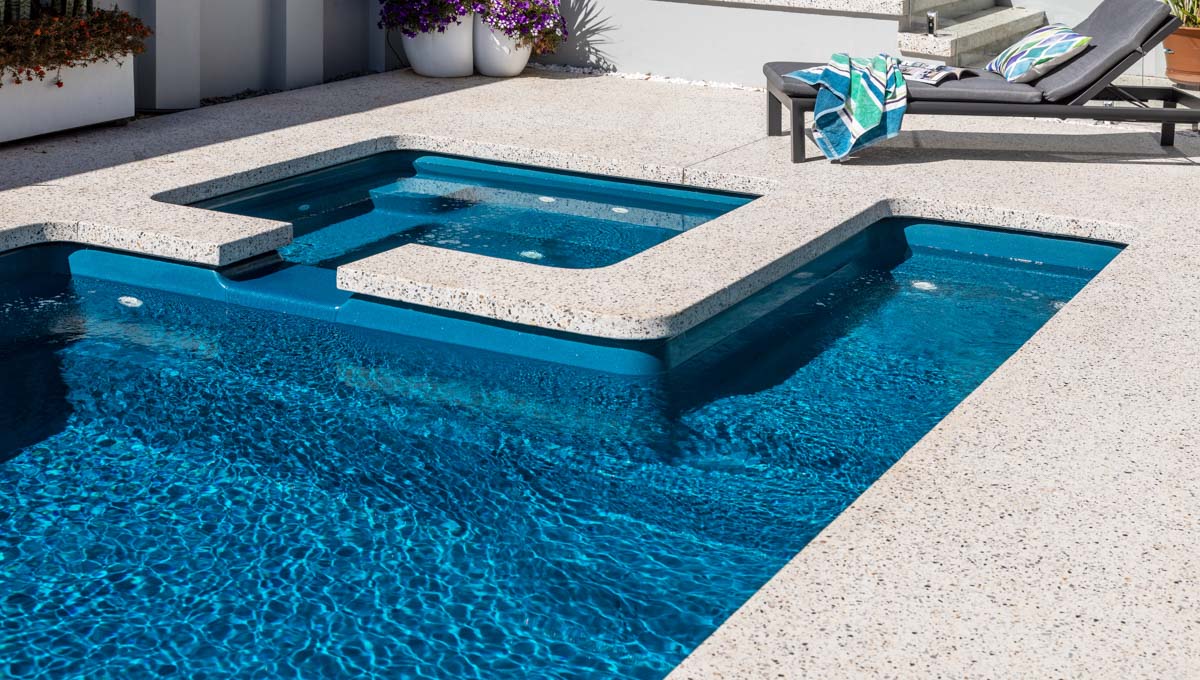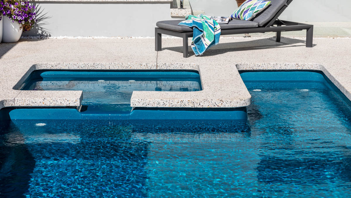 Fibreglass Pools Melbourne > Pools > Brooklyn Slimline 7.2m x 3.5m Royal Jade Shimmer Walliston