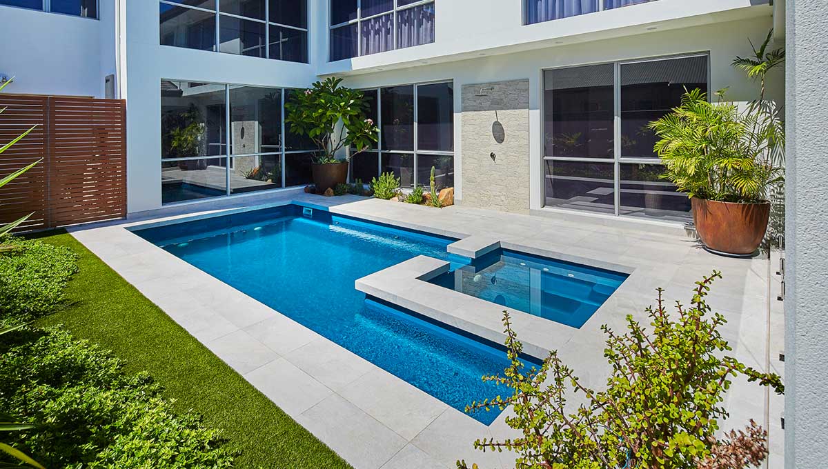 The entryway gracefully descends into a versatile platform, a canvas of possibilities awaiting exploration. Picture the boundless laughter of children transforming it into a lively kids’ play area, where splashes become symphonies of joy. Alternatively, envision it as a tranquil water lounge, where time slows down, and relaxation finds its truest form amidst the gentle caress of water. The Brooklyn Pool and Spa Range adapts to your family’s needs, providing the perfect backdrop for various activities and shared moments of joy.