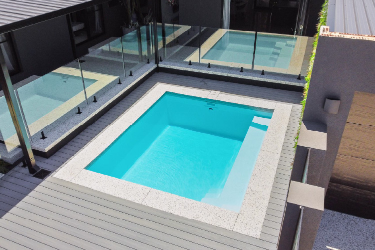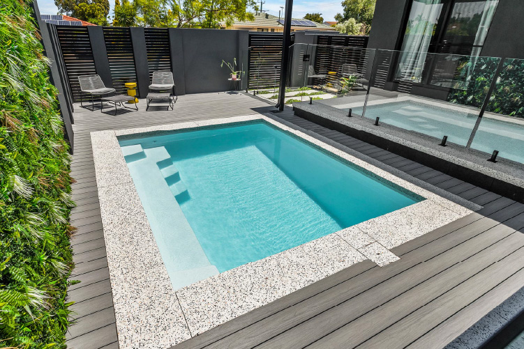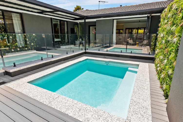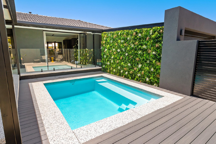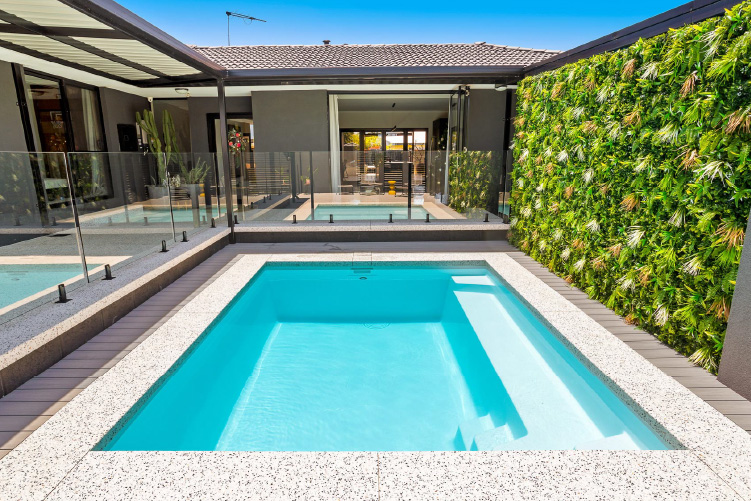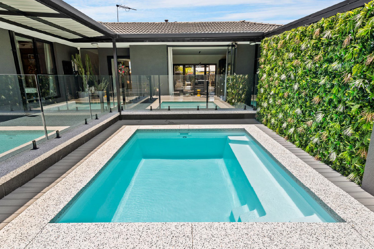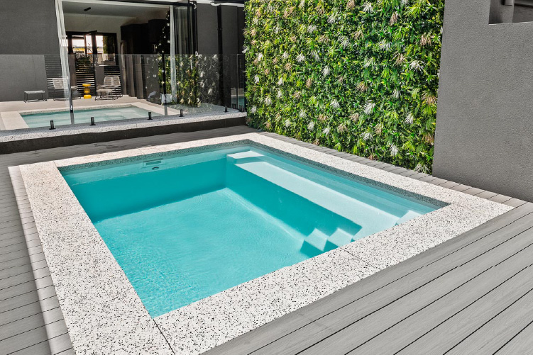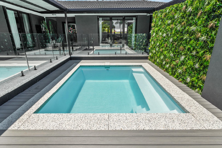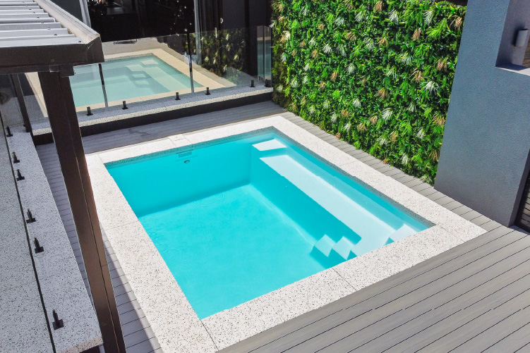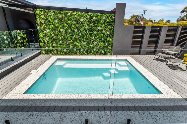 Check out our 4m x 3.2m Cervantes pool in our stunning Polo White Sparkle colour, recently installed in the beautiful suburb of Padbury. This exquisite pool is not only a perfect fit for any backyard, but it also adds a touch of elegance and sophistication to your outdoor space. With its sleek design and sparkling water, it creates a captivating focal point that will impress your guests and provide endless enjoyment for you and your family. Enhance the ambiance even further by incorporating a feature wall that complements the pool and brings out its beauty in an enchanting way. Explore the possibilities and transform your backyard into a luxurious oasis with our exceptional Cervantes pool.