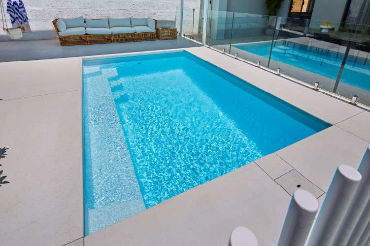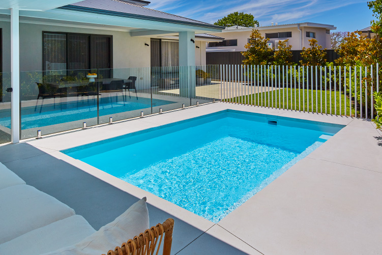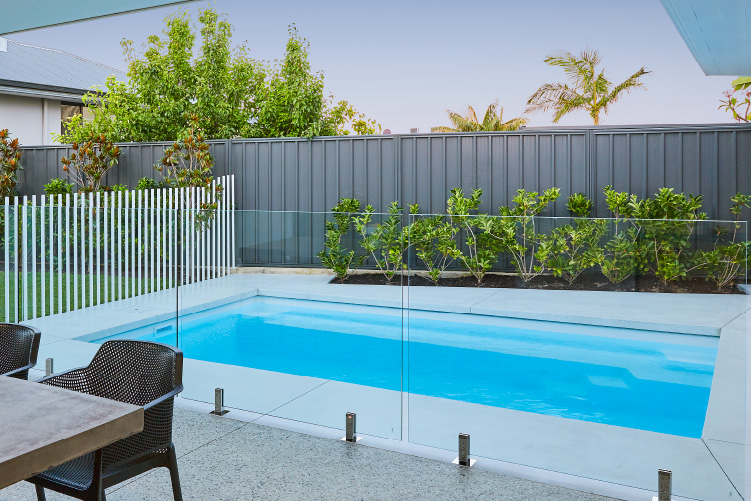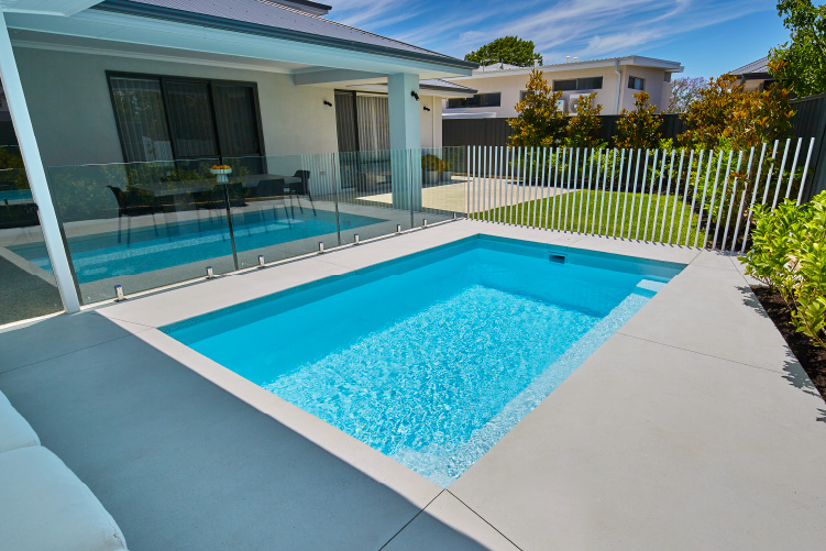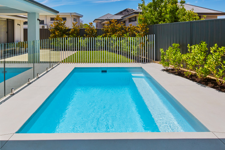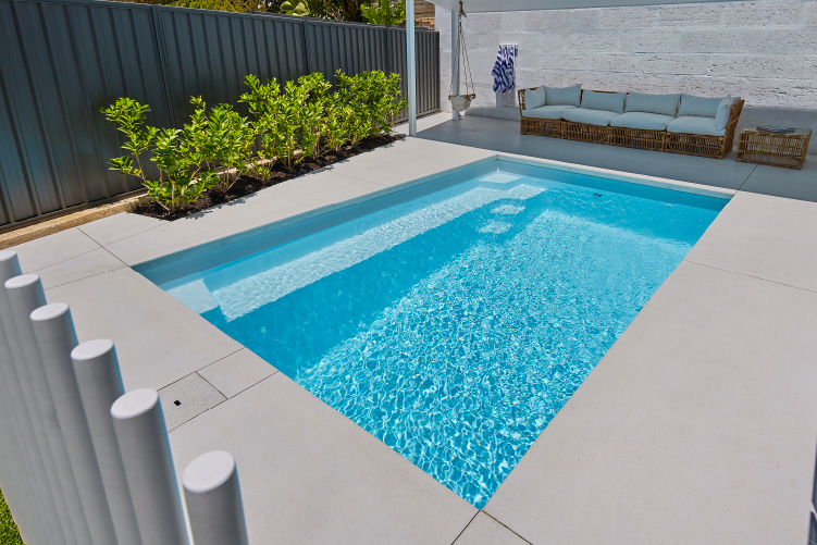 Our beautiful 5m x 3.2m Cervantes pool in Polo White Sparkle has been expertly installed at a stunning Attadale home. With its sleek design and sparkling finish, this pool effortlessly complements the simplicity of the backyard landscape, creating a truly captivating atmosphere. The minimalist fencing not only enhances the overall aesthetic but also adds a touch of modern elegance to the space.