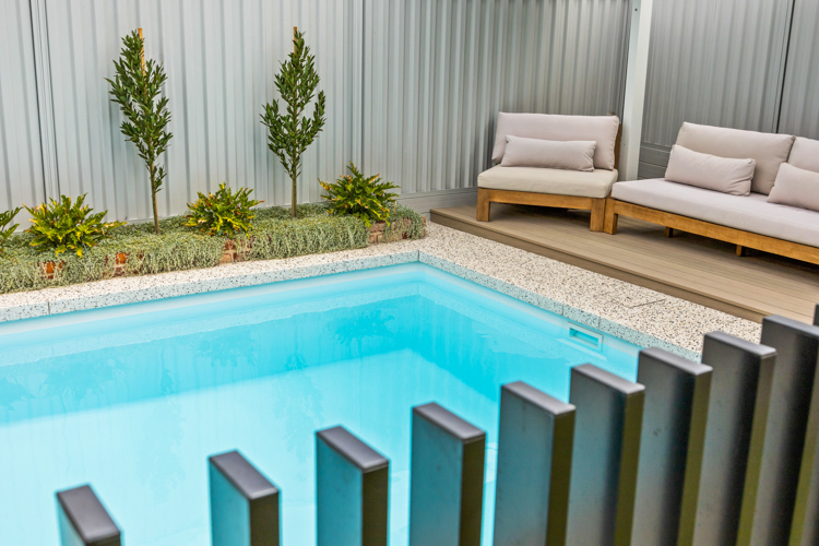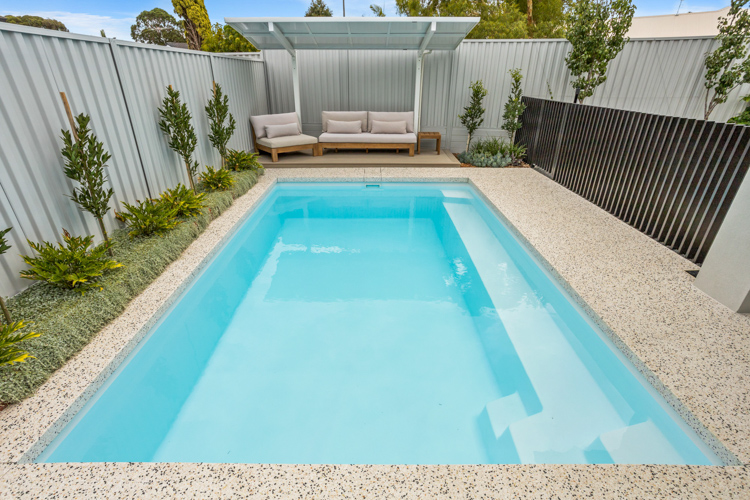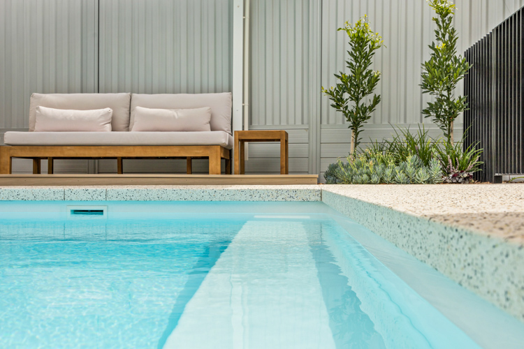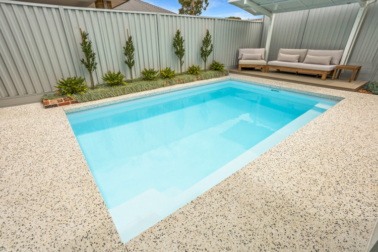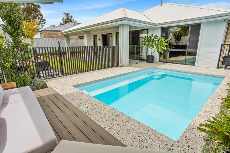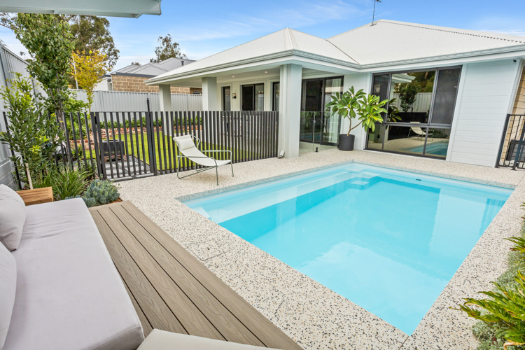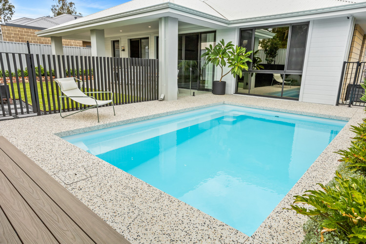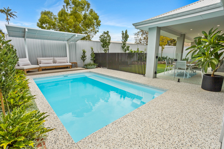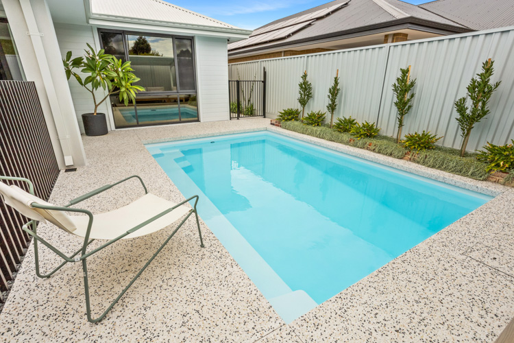 Introducing our stunning Horizon Series pool, which is available in the impressive 5.5m x 3.6m configuration. This exquisite model showcases the captivating Polo White Sparkle colour, bringing an elegant touch to any home. Installed at a beautiful residence in Dianella, this pool offers abundant swimming space, with a convenient bench seat running alongside for the perfect spot to relax and enjoy the water. Contact us today and request a free quote to turn your dream of a luxurious pool into a reality!