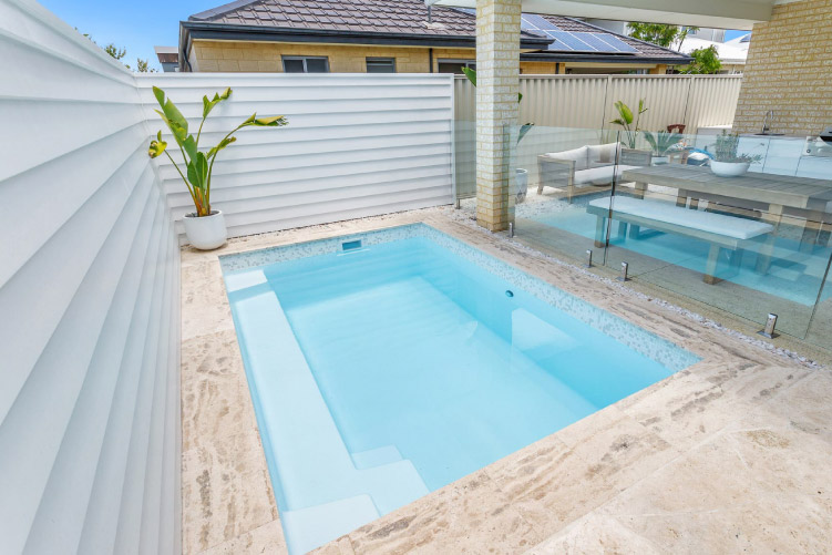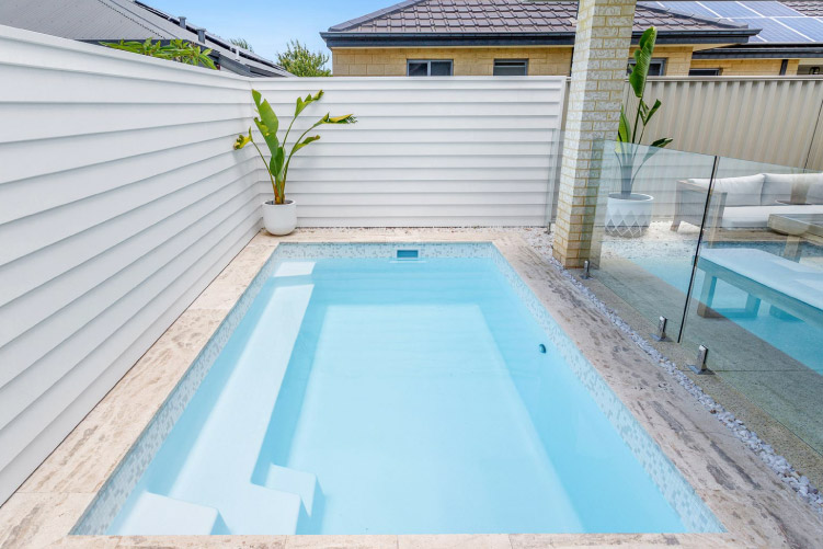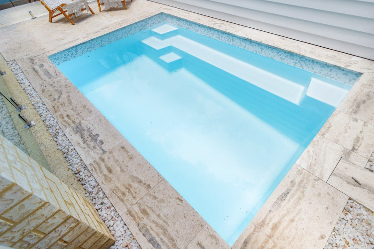 The Stradbroke 4m x 2.5m is a great size for homes not a lot of backyard space. As blocks are getting smaller, it’s vital to make the most of your outdoor area and still have room to let your creativity fly. This pool is sporting our Polo White Sparkle colour, but we have plenty of colours for you to choose from. Simply get in touch with us for a free quote or give us a call to get started!
