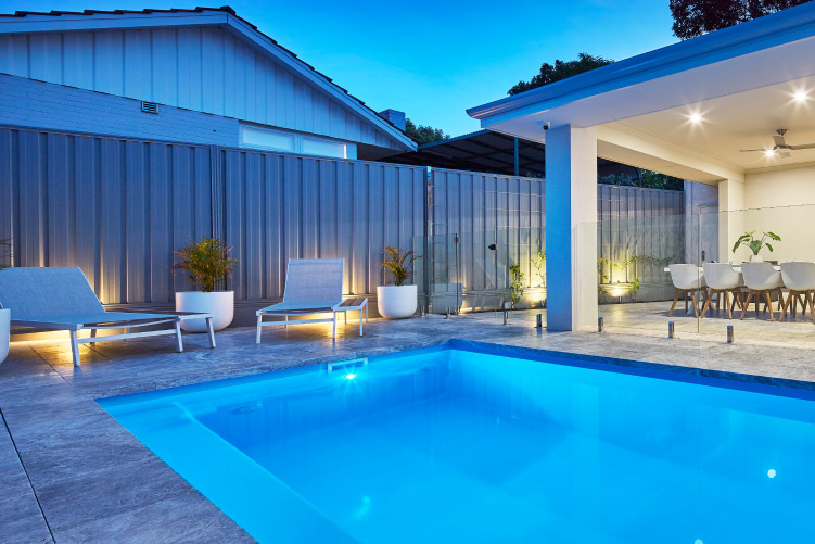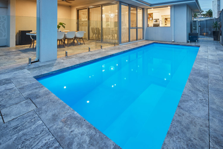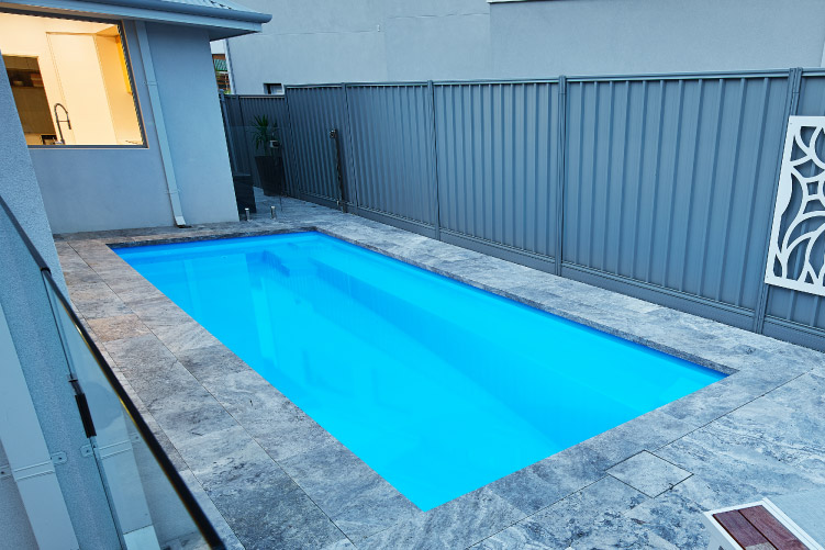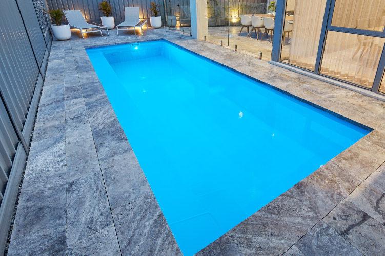 The Stradbroke 7m x 2.5m is perfect for your backyard. With plenty of swimming space and lots of room to splash around, it’s vital to make the most of your outdoor area and still have room to let your creativity go wild. This pool is sporting our Sky Blue Sparkle colour, but we have plenty of colours for you to choose from. Don’t hesitate to get in touch with us for a free quote or give us a call to get started!
