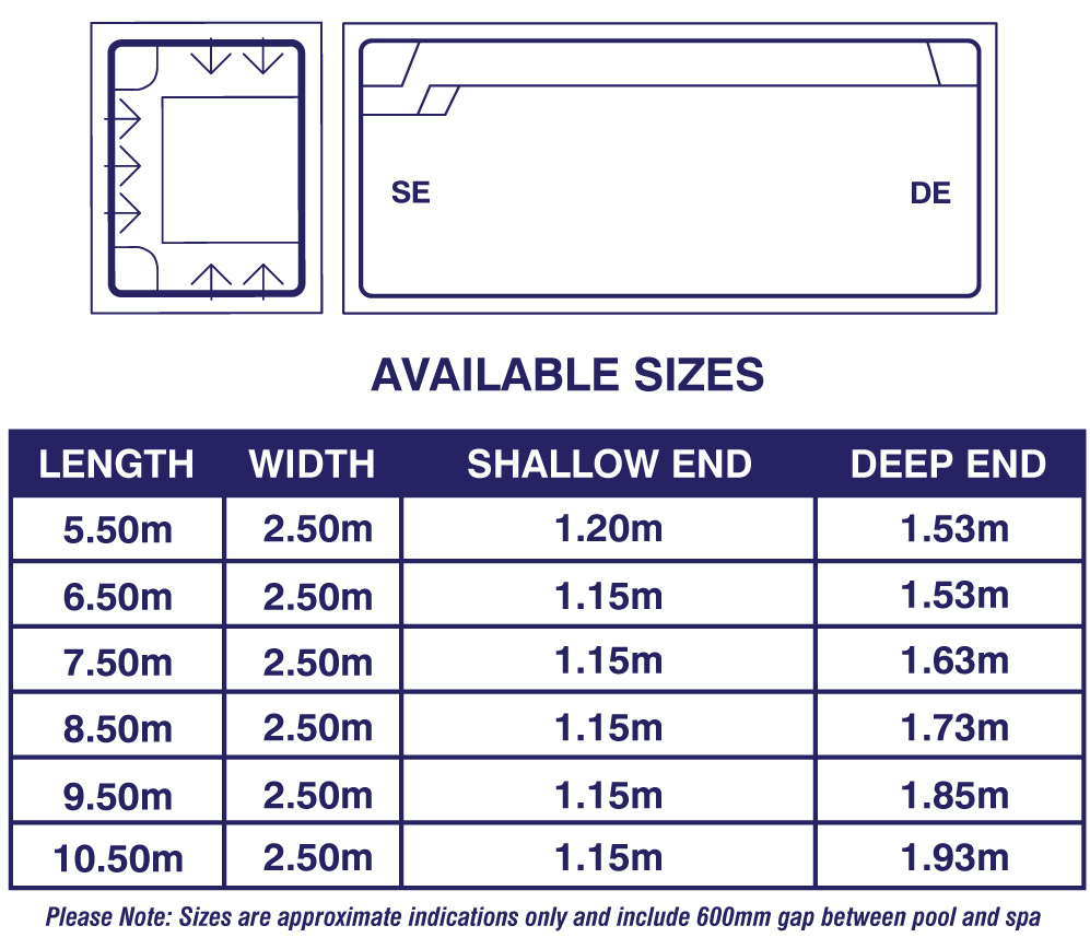 Overall length includes 600mm gap between pool and spa wader