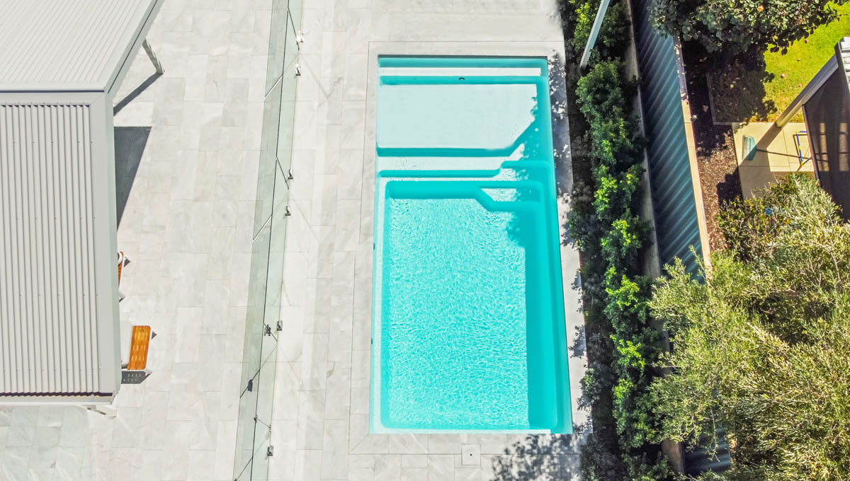 The Sunseeker is one of our more recent designs in our extensive pool range. This pool features our Royal Alpine White Shimmer colour. This simplistic, clean design truly has it all, along with a full-length step for easy access, a massive splash deck for simply lazing around with family and friends or utilise this space as a fun-filled kids play area. With recessed steps, the Sunseeker Slimline Series has an uninterrupted swimming section.
