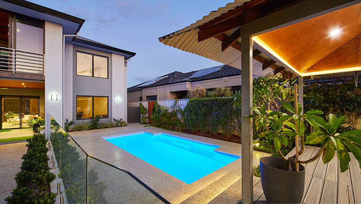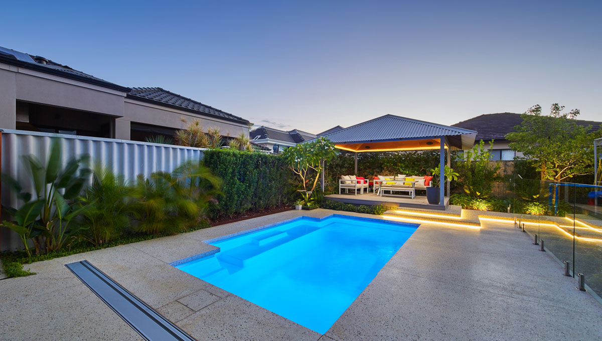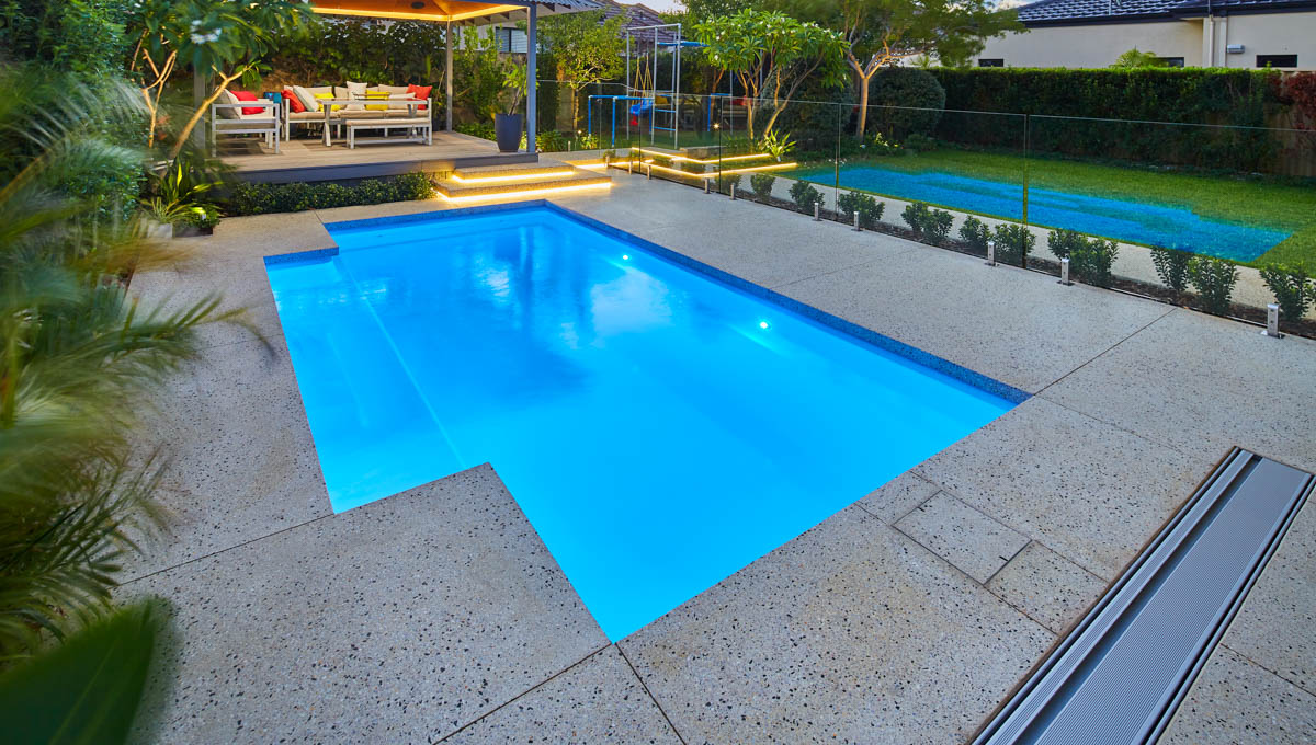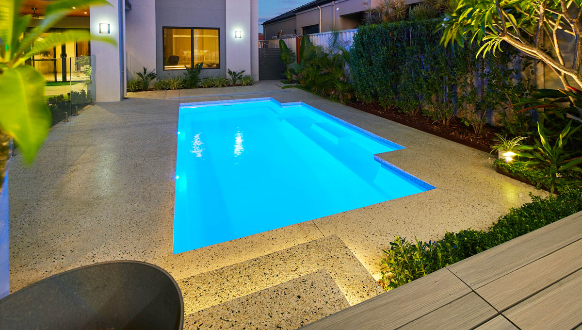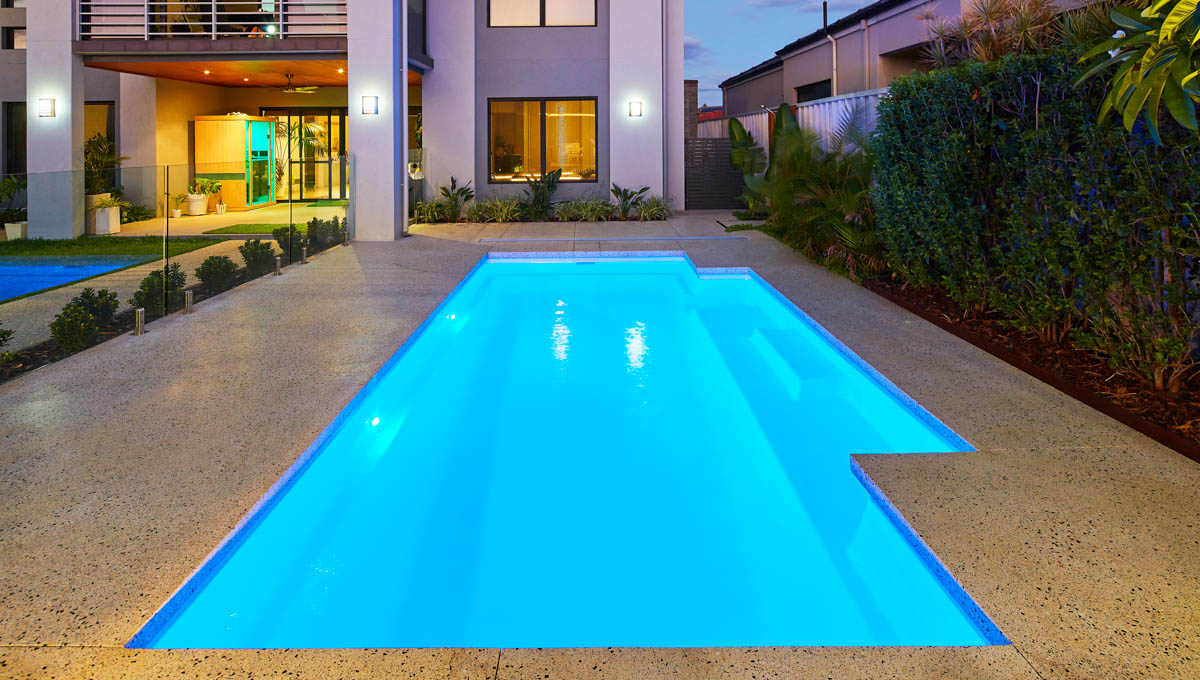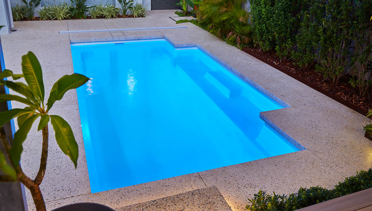 Fibreglass Pools Melbourne > Pools > Venice Slimline 6.2m x 3.45m Alpine White Shimmer Stirling